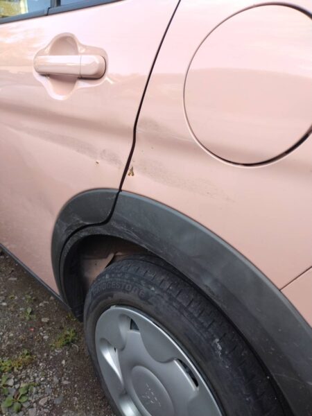 スズキ ラパンをぶつけてしまい、キズ修理のご依頼です!