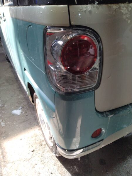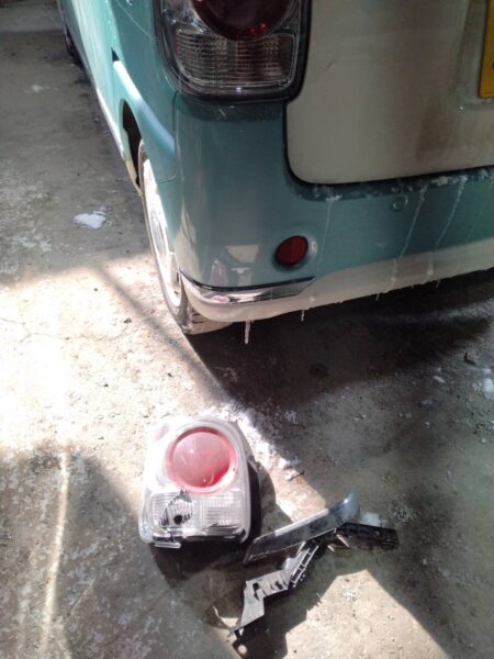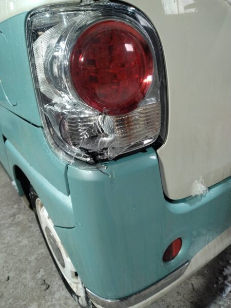 カーポートの柱にぶつけてしまったとのことでの入庫です。